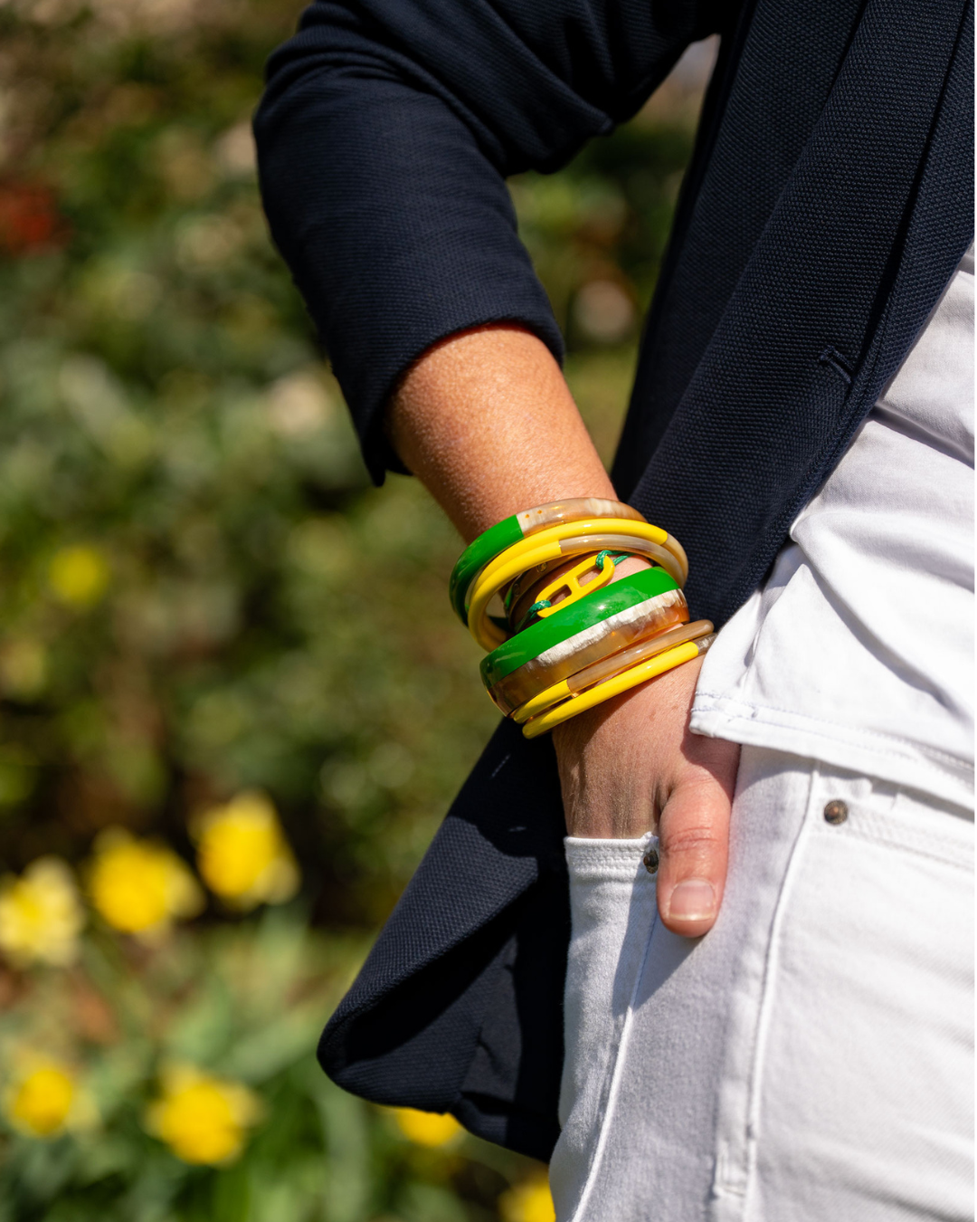 Céline s'efforce constamment d'innover avec des collections qui reflètent toujours la joie et l’élégance, sans jamais oublier ses engagements envers l’artisanat et la durabilité. On les mélange, on les accumule, on les adore ! Un univers vibrant et créatif.