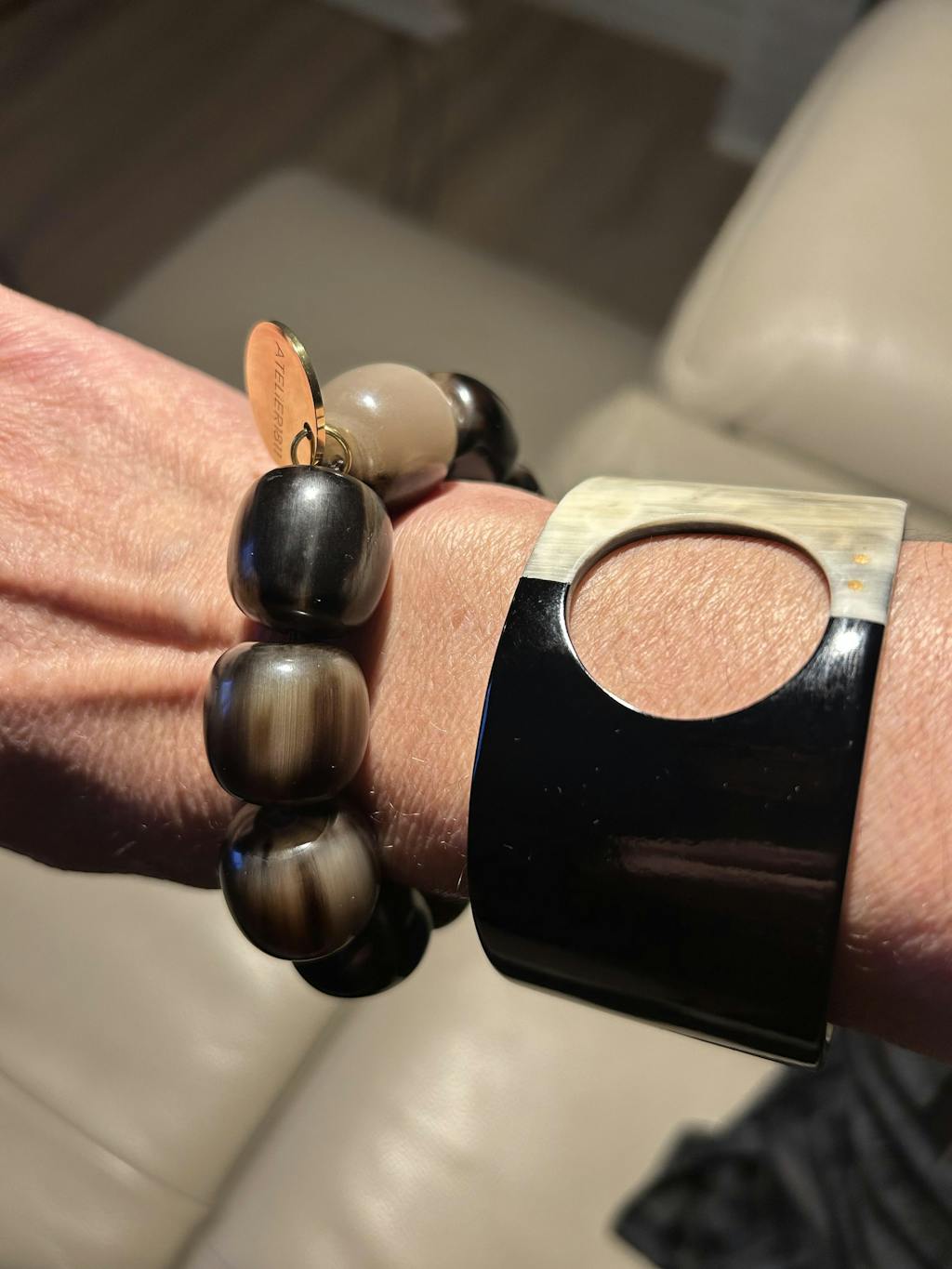 Chaque bijou ATELIER1811 est unique, fabriqué à partir de corne naturelle, ce qui peut entraîner de légères variations de couleur et de taille. En gage d'authenticité et pour prévenir les contrefaçons, chaque pièce est marquée de deux poinçons, signature exclusive de la marque.